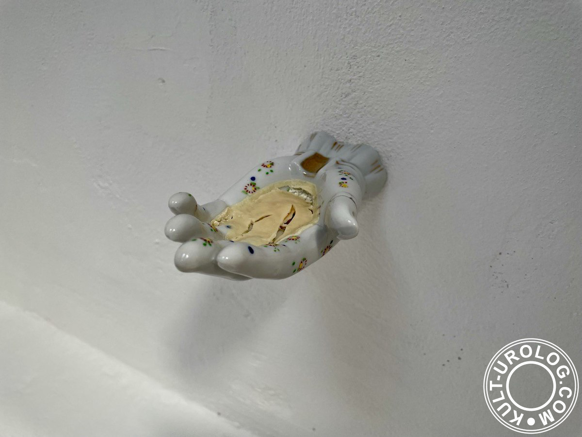 So, quoting the gallery’s description: «This ‘in-between space’, where two cultural systems meet, is also a frequent area of artistic exploration for Youki Hirakawa. Despite all human effort, incredibly sophisticated technology, and the global virtual and gastronomic environment, intercultural contact still runs into errors in encoding, mutual prejudice, and food intolerances» and «Youki’s creative approach can be symptomatically called a language that helps to decipher mojibake. He explores everyday objects that have become political or transformed into their own code through their universal emotional charge» (and that’s what the exhibition is about).